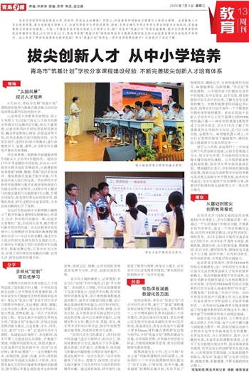 创造力是与生俱来的,人人都有成为拔尖创新人才的可能,每个人的天赋兴趣与创新能力都不一样,因此对拔尖创新人才的培养也并非单纯地进行学科奥赛。在青岛各市区,从小学到初中、高中,从兴趣到发展,丰富多彩的课程和课堂,正是为了充分鼓励在部分学科、部分领域表现有潜质、优异且突出的创新型学生成长起来,从发现到培养到造就,从基础到提升到拔尖,青岛市“筑基计划”正走在力促创新、赋能思维、积蓄能量、不断实践的探究之路上。