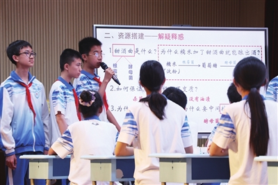 市北区实验初级中学教师隋小娴展示了跨学科融合课例《玩转蜡烛》,将语文、化学、科学的内容融为一体,拓宽学生思维的广度,引发深入思考,赋予跨学科教学项目的内涵。市北区教育研究发展中心生物教研员李琛琛执教课例《健康的生活——生活中的发酵》,通过学生小组合作探究及研究报告呈现的方式,引领学生开展基于项目式的跨学科实践研究,探秘发酵过程,引导学生关注生活,实现了项目研究对标解决问题、应用生活、探究创新的价值目标。