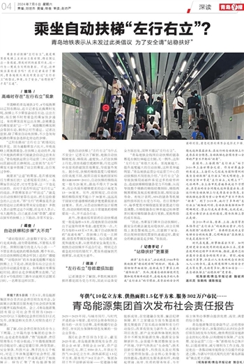 “请站稳扶好,注意脚下安全,不要行走或奔跑,请勿倚靠裙板,不要低头看手机。照顾好随行的老人与小孩……”不管在青岛地铁的哪条线路、哪个车站,在自动扶梯附近都会听到上述的广播提醒。“‘站稳扶好’的本身就是提醒不能在扶梯上上下走动,因此靠右站立让出左边的举动就没有意义。如果确实有乘客赶时间,最好去走步梯或乘坐直梯。”记者在4号线劲松三路车站就相关话题采访时,一名乘客这样回答。