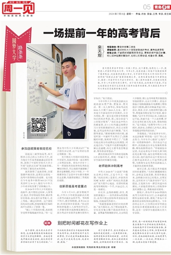 这个暑假,栾天煜正在学习雅思,也准备跟随张英伯教授继续学习大学先修课程。在接受青岛早报记者采访时,栾天煜对学弟学妹们分享了自己的经验:“一个比较优秀的学生不能把时间都用来写作业,而要有时间干自己的事情,可以是延伸拓展拔高知识,也可以是反思总结,或者补弱、提高。”