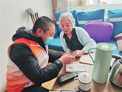 家住东海一路的王阿姨重度残疾,行动不便,老伴儿管大叔常年卧病在床,夫妻俩购物买菜极为不便。湛山社区网格员雷胜军在日常精准摸排网格内的特殊困难老人过程中,了解到王阿姨的家庭情况,第一时间去其家中沟通,了解到王阿姨买菜不便和线上支付水电费困难等情况,雷胜军每周都会及时将王阿姨网购的蔬菜、肉类等送到家中,检查一下家中用水用电情况,教会老人如何用手机缴纳水电燃气费,最大程度为困难老人提供高效温暖的服务。