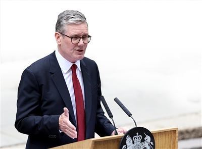 斯塔默在英国伦敦唐宁街10号首相府前发表讲话。
