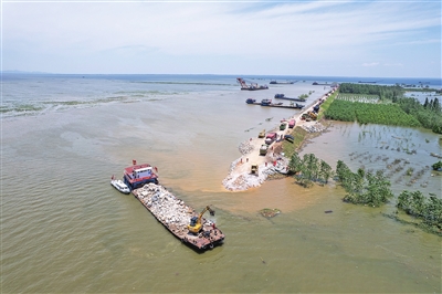 7月5日,湖南岳阳市华容县团洲垸洞庭湖一线堤防发生决口。据了解,团洲垸溃口从6日15时开展堵口,目前进展顺利。