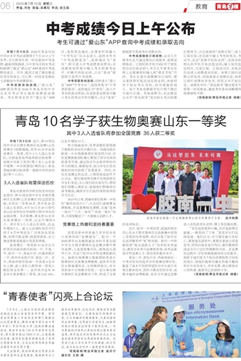 早报7月9日讯 2024年青岛市初中学业水平考试成绩将于7月10日上午发布,为方便考生第一时间获知中考成绩,避免网络拥堵,今年青岛市招生考试院新增了通过“爱山东”APP查询中考成绩的途径。另外,提前订阅了微信推送的考生和家长,可以第一时间享受微信主动推送中考成绩服务。