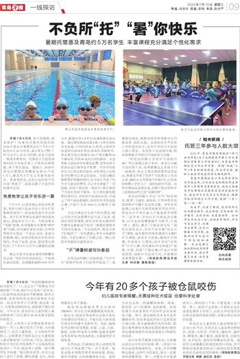 早报7月9日讯 “我的胳膊被家养的仓鼠咬了一口,怎么办?”“我喂兔子时被咬破了手指,要打什么疫苗?”近年来,人们接种疫苗的意识不断增强,很多人被猫、狗抓伤咬伤会及时接种狂犬疫苗。但也有很多人不清楚,被仓鼠、兔子、乌龟等动物咬伤后,到底要不要打疫苗。今年以来,青岛妇女儿童医院儿童动物致伤门诊已接诊20余名被仓鼠咬伤的患儿。