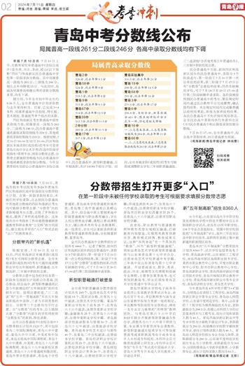 早报7月10日讯 7月10日,青岛市招生考试院发布2024年青岛市四区和高新区高中阶段招生分数带招生计划。在第一阶段录取结束后,未被任何学校录取,且达到民办普通高中其他班分数线的四区和高新区考生均可填报分数带志愿。“分数带”内的录取根据考生志愿,呈现了多种招生模式,提供了多样的选择机会。这体现我市中考招生工作向着搭建兼顾普通教育和职业教育“立交桥”的方向前行,建立拥有多样的“入口”和灵活的“出口”的教育体系。