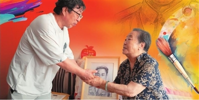 青科大艺术学院老师刘俊谦根据资料绘出烈士肖像,王毓敏连连称赞“特别像”,她手捧画像追忆红色往事
