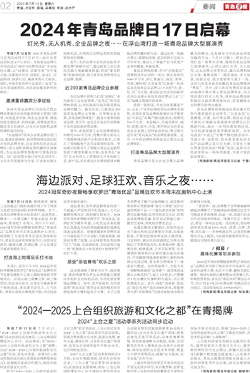 本周六、周日下午5时,2024冠军奇妙夜暨畅享欧罗巴“青岛优品”品牌狂欢节在青岛奥帆中心海上剧场背面的寻梦堤举办。活动由海上观赛之夜、海上燥事局、热浪音乐派对、足球宝贝展演等多个板块组成,青岛著名音乐人、人气乐队、青春女团将点燃现场气氛,为市民游客带来精彩演出。