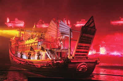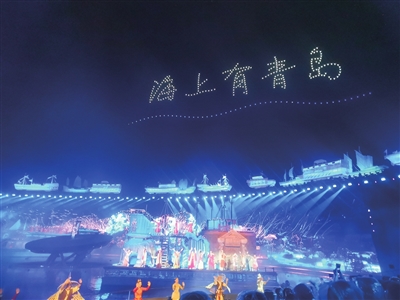 气势磅礴的现代化沉浸式演艺秀《海上有青岛》。