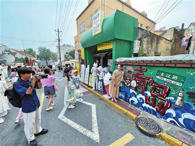 “每走几步就会有惊喜,这些门店的装饰各有特色,我已经拍了20多张照片了。”来自山西的游客李芸说。记者在龙江路上看到,一家咖啡店的墙面上喷涂了“青岛”两个字,吸引游客排队拍照,有些游客还会录一段漫步走过“青岛”的情景视频。“来了青岛,在这里留下一段影像,分享给朋友们。”来自云南的游客卢菲菲说,她是奔着大学路网红角来的,没想到旁边这条路也这么火爆。“从去年开始,龙江路上又新开了几家咖啡店,装修风格都很独特,游客开始多起来。特别是今年,街道组织大家开展了环境整治,周边变得更漂亮了,游客也更多了。”家住恒山路的居民秦丽说,暑假一到,龙江路、黄县路、大学路、龙口路围合的这片区域,游客如潮。