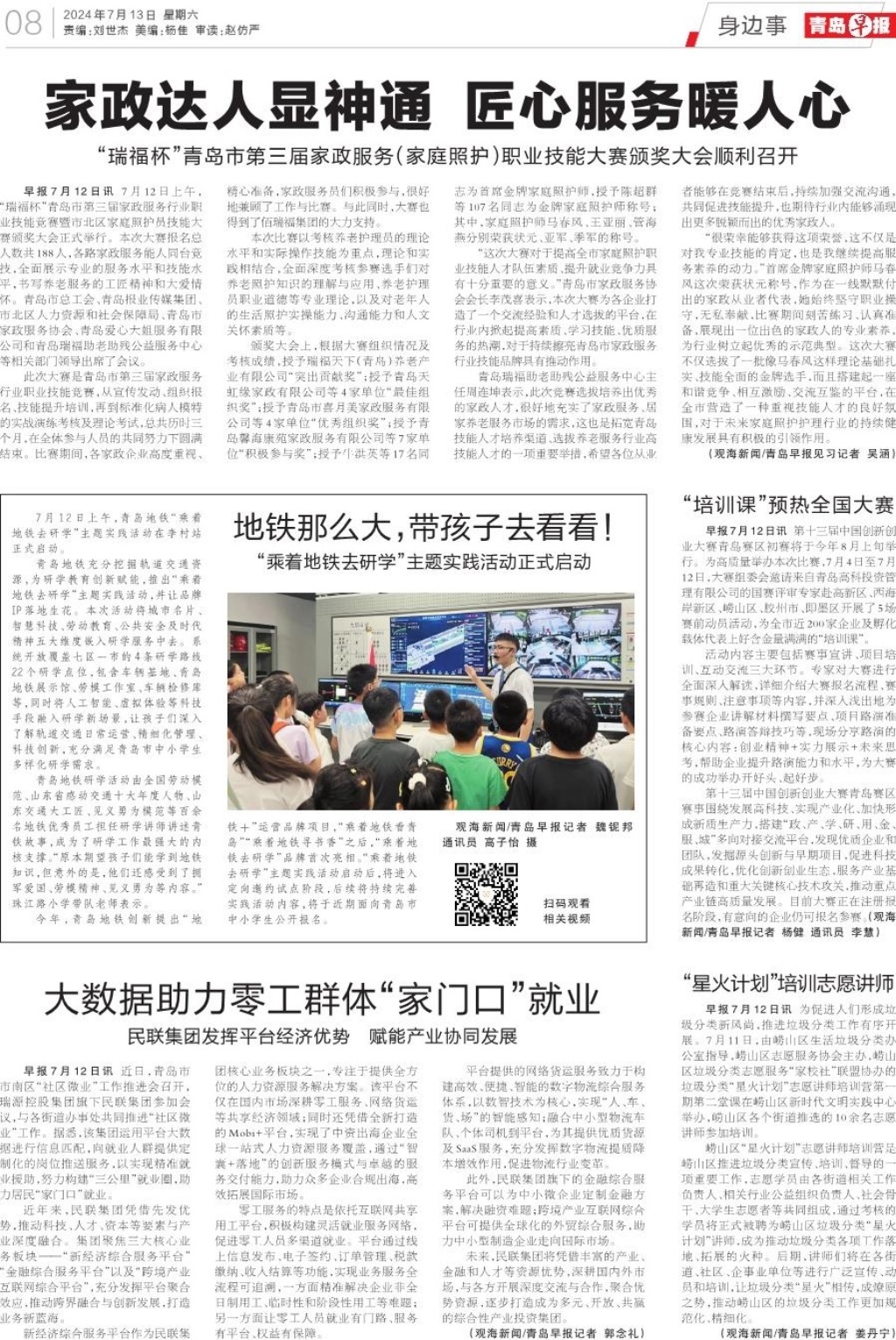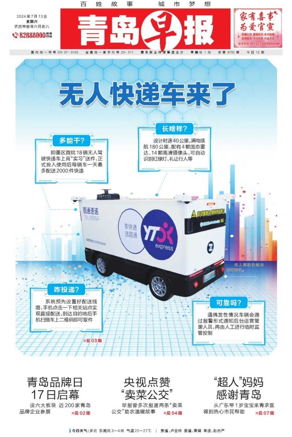 A01 头版 A02 要闻 A03 今日看点 A04 暖新闻 A05 深读 A06 都市圈 A07 大爱青岛 A08 身边事 A09 周末 A10 文艺评论 A11 人文青岛 A12 天下