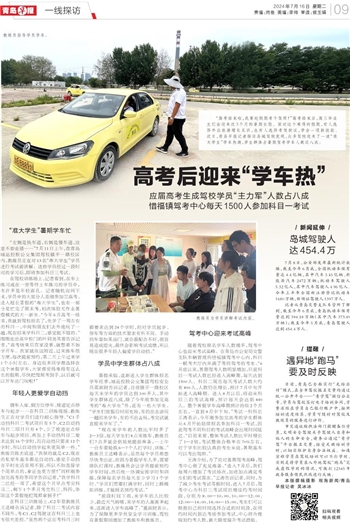 “高考结束啦,我要趁假期考个驾照!”高考结束后,高三毕业生们会迎来近3个月的暑期长假。面对这个难得的假期,有人选择外出旅游增长见识,也有人选择考驾驶证,学会一项新技能。近日,青岛早报记者探访岛城驾校发现,众多驾校迎来了一波“准大学生”学车热潮,学生群体占暑期驾考学车人数近八成。