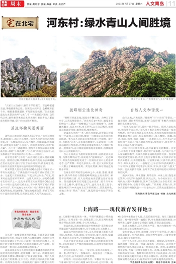 “人家三五自成村,修竹千竿恰到门。石齿崎岖通鸟道,茅檐错落倚云根。但凭花木识年月,全赖樵苏长子孙。继踪逄萌谁遁世,不知即此是桃源。”在北宅街道北九水景区的外“七水”,有一个美丽的河东村,自明代以来,就凭着秀美的山水风光吸引着许多文人墨客前来探胜寻幽,留下的诗文数不胜数。