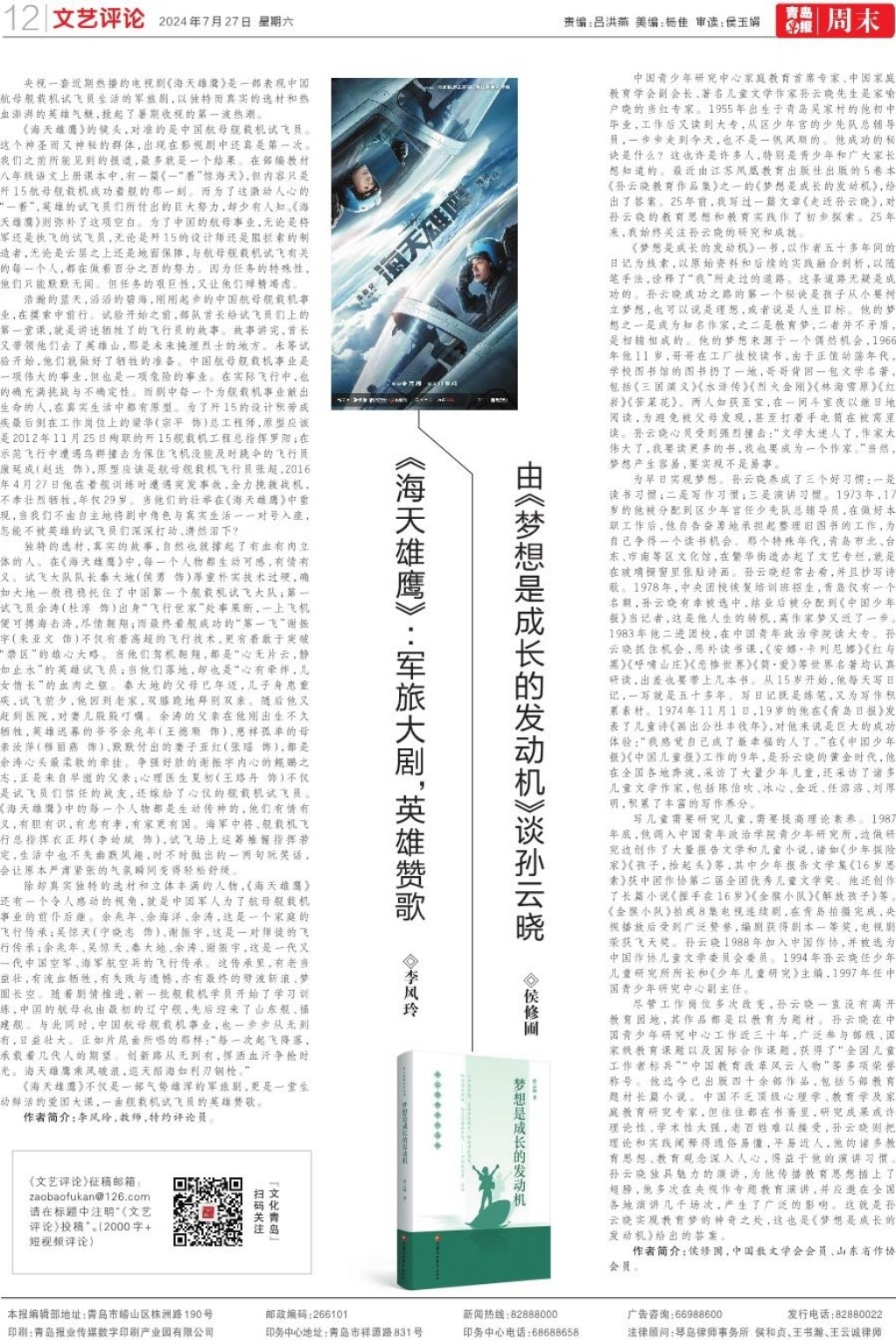 《海天雄鹰》不仅是一部气势雄浑的军旅剧,更是一堂生动鲜活的爱国大课,一曲舰载机试飞员的英雄赞歌。