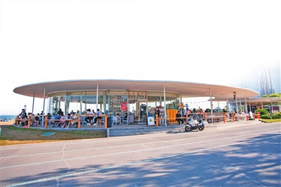 如是书店的设计别具一格,在靠近石老人浴场的海滨边,全书屋采用全景玻璃透光式结构,打造环绕式通透海景空间。书店内外都摆置桌椅,装饰简洁而富有艺术感。捧起一本书琢磨字行间的感情,端起一杯咖啡品尝唇齿间的醇香。开阔的视野、舒适的环境让读者在放松身心阅读的同时大饱碧海蓝天的眼福。