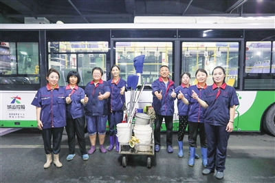 李沧巴士保洁班组8名成员。