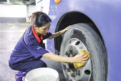 记者从李沧巴士第三分公司了解到,日常工作中,保洁班组成员每人负责9辆车的清洁工作。每天,清晨的阳光尚未唤醒沉睡的城市,班组成员已从家中悄然出发。为了确保最早发出的首班车能在4点55分干净整洁地准点进站,他们需要赶在4点30分前抵达岗位,开启一天的忙碌。