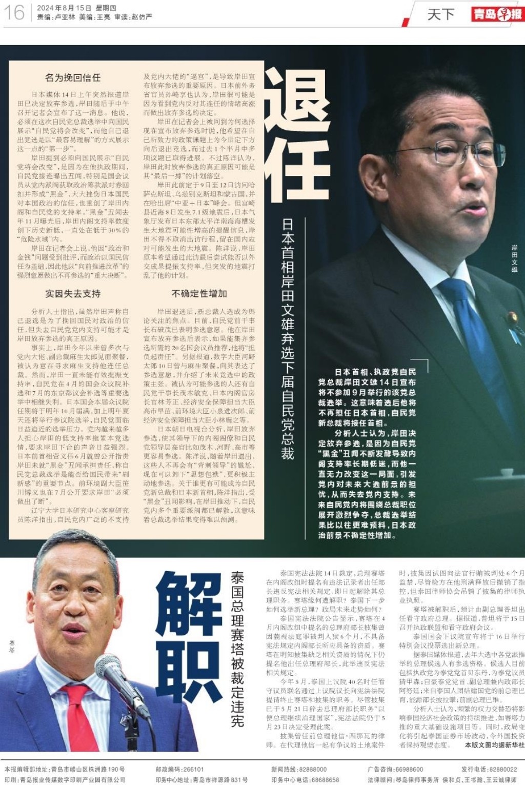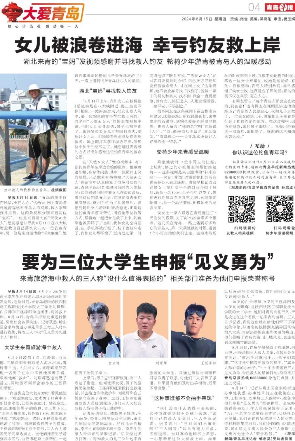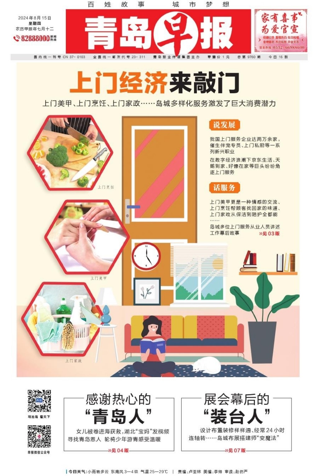 A01 头版 A02 政青岛 A03 今日看点 A04 大爱青岛 A05 加快城市更新建设 提升市民生活品质 A06 一线探访 A07 深读 A08 健康 A09 都市圈 A10 产经 A11 观点 A12 星光岛 A13 荐书 A14 地产 A15 业界 A16 天下