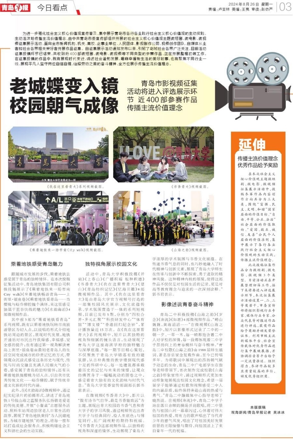 A01 头版 A02 划重点 A03 今日看点 A04 周一见 A05 周一见 A06 周一见 A07 开学季 A08 加快城市更新建设 提升市民生活品质 A09 发布 A10 身边事 A11 深读 A12 青岛面孔 A13 都市圈 A14 瞰青岛周刊 A15 新气象 A16 观天下周刊