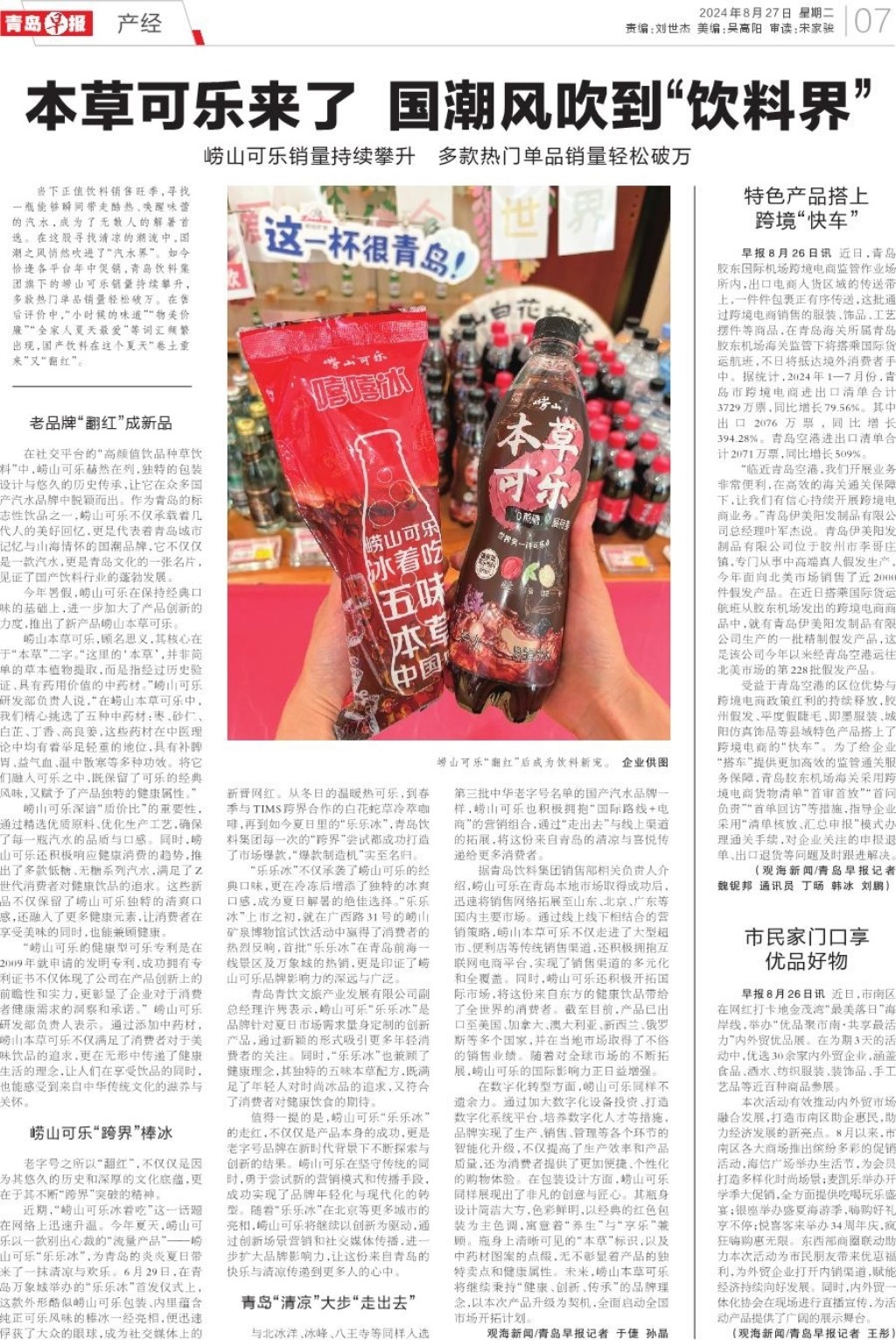 今年暑假,崂山可乐在保持经典口味的基础上,进一步加大了产品创新的力度,推出了新产品崂山本草可乐。