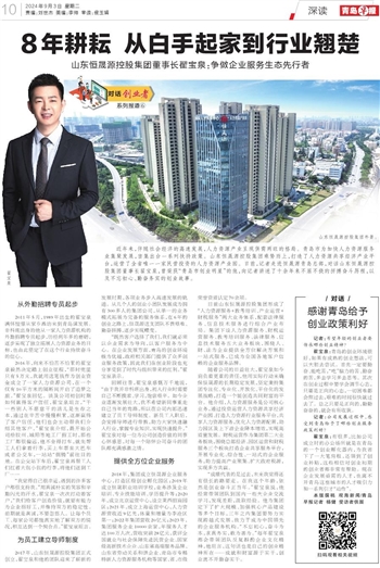 近年来,伴随社会经济的高速发展,人力资源产业呈现供需两旺的格局。青岛市为加快人力资源服务业集聚发展,密集出台一系列扶持政策。山东恒晟源控股集团乘势而上,打造了人力资源共享经济产业平台,运营了全省唯一一家民营投资的人力资源产业园。日前,记者走进恒晟源青岛总部,对话山东恒晟源控股集团董事长翟宝泉,曾荣获“青岛市创业明星”的他,向记者讲述了十余年来不屈不挠的拼搏奋斗历程,以及不忘初心、勤奋务实的创业故事。