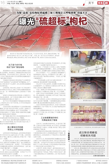 枸杞作为“药食同源”的代表性品种,广泛应用于食品、饮料、保健品等领域。“保温杯里泡枸杞”是不少人的“养生小习惯”。然而,在一些不法分子的炮制下,看起来颗粒饱满、鲜艳红亮的枸杞,却是“含硫”超标的产物,有着巨大的食品安全隐患。