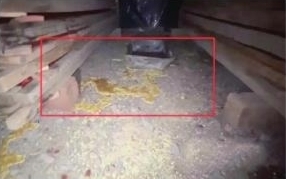 熏制棚内地面已经被完全染成黄色。