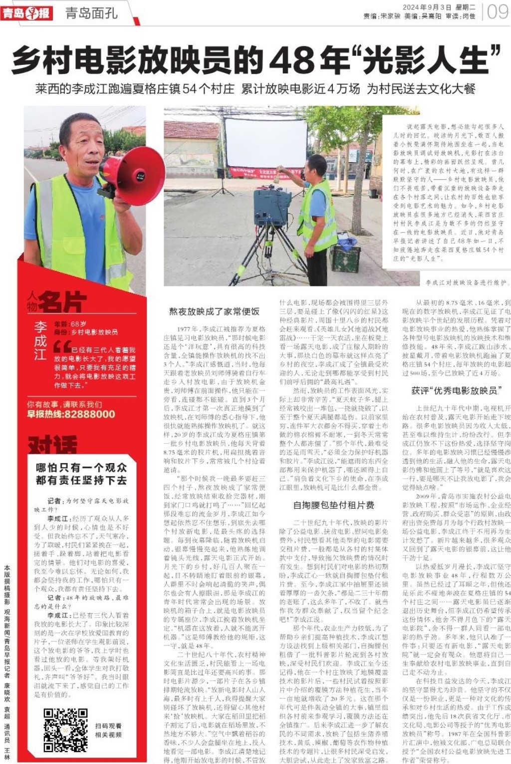 乡村电影放映员的48年“光影人生”