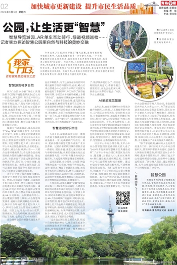 “过去逛公园主要是看看风景,贴近大自然呼吸新鲜空气,现在青岛的各个公园智慧化水平不断提高,公园里有好景致,也能发现更多惊喜。服务更贴心了,散步锻炼更舒心了,而且还特别有教育意义,带孩子到公园里的话,也是让他们深入观察身边小世界的好机会。”市民李女士感慨道。