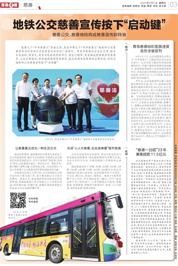 9月4日,青岛市第九个“中华慈善日”地铁和公交慈善宣传活动启动。