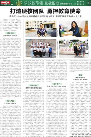 一朝沐杏雨、一生念师恩。在青岛三十九中这所建校七十余载的蓝色校园里,打造了一支重实效、肯干事、乐奉献的教师队伍。这支雄厚的师资力量给无数学子送去了知识的力量和成长的收获。他们用心、用情耕耘三尺讲台,与学生之间的感情从师生超越到亲人。让我们一起去听听这所海洋名校的育人故事。