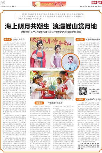 9月13日岛城迎接中秋佳节的文艺展演、文化体验温馨上演,这些活动围绕“海上生明月 山海共潮生”的主题,吸引市民和游客充分感受我国传统节日的独特魅力,共赴一场浓情秋日的山海之约。