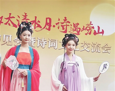 现场还举办了“太清水月·诗遇崂山”诗词文化交流会,邀请青岛著名文化学者宋文京与游客分享诗词里的崂山。宋文京表示,自古以来崂山以其独特的自然风光和深厚的文化底蕴,成为文人墨客吟诗的灵感源泉。从唐代李白“我昔东海上,劳山餐紫霞”到宋代范仲淹“江海生灵外,乾坤揖让中”,再到明清两代的文人,在崂山留下了许多脍炙人口的诗篇。宋文京通过带领游客走进诗词里的崂山,引导广大市民游客沉浸式感受一场别样的文化之旅。