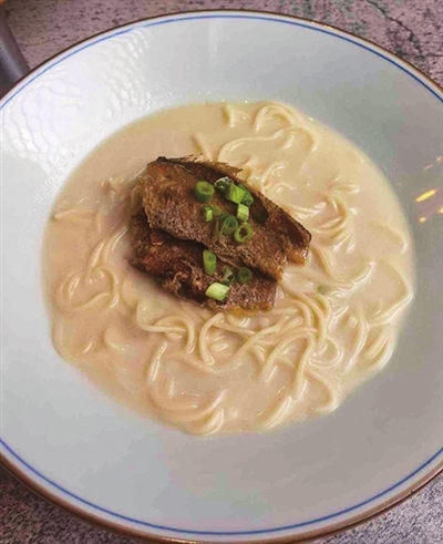 “作为土生土长的青岛人,我对海有着丰富的情感,想通过创新食品的花样让更多人感受到海洋美食。”青岛李沧绿城喜来登酒店行政总厨马维涛在美食行业深耕多年,倾情推荐了两款最近新研发的“双子星”美食——八仙海鲜小面和鱼汤黄鱼小面。这两种面都以海鲜为主打味道,以海鲜汤起底,挑一缕品尝,唇舌间弥散的尽是醇厚的海洋风味。