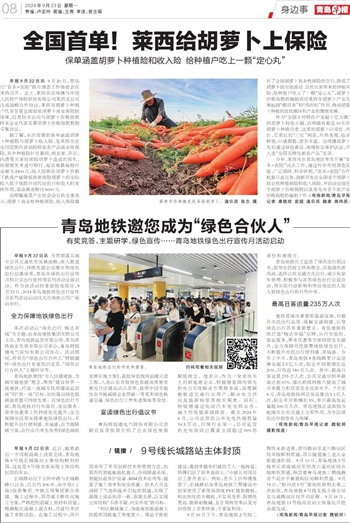 今年,莱西市在青岛地区率先开展“农本+农险”试点工作,通过科学布局调查范围,广泛调研,科学研判,“农本+农险”合作机制日益完善,创新开发出全国首个胡萝卜商业性种植保险和收入保险,并启动全国首个胡萝卜价格指数以及青岛市首个农产品价格指数的编制工作。(观海新闻/青岛早报记者 康晓欢 袁超 通讯员 魏康 展玮辰)