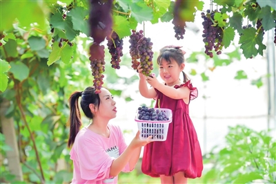走进即墨区蓝村街道王家屋子村桃源河谷家庭农场,一眼望去,一串串紫红圆润的葡萄挂满藤架,透着诱人的光泽,令人垂涎欲滴。桃源河谷家庭农场负责人王本奇说,农场现有“阳光玫瑰”“夏黑”“美人指”等十几个葡萄品种,共150多亩,平均亩产达2000公斤,每亩收入可达10万元。他介绍,即墨区蓝村街道引导农民采取“合作社+基地+农户”的模式,因地制宜建设有采暖设施的葡萄棚,打造农旅融合田园综合体,带动农民增收,助力乡村振兴。
