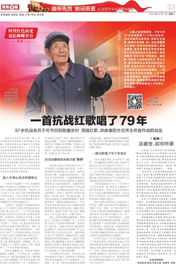 “战斗英雄任常伦,19岁参加了八路军。打仗像猛虎,冲锋在头阵,完成任务坚决又认真,为人民战斗才有决心……”9月27日,秋日斜阳照在后洪兴村的大街上。这个时候,村民们熟悉的那首红歌《战斗英雄任常伦》响起。后洪兴村的人都知道,这是抗战老兵于可节的歌声,这首歌他已经在村里传唱了79年。