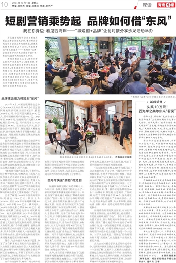 此外,青岛西海岸新区出台了《支持青岛影视基地高标准建设的若干政策》,在扶持微短剧基地建设上,对在西海岸新区拍摄的优秀微短剧(含小程序剧)给予单部作品最高100万元的奖励,吸引了更多剧组来到青岛影视基地拍摄。
