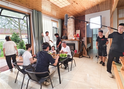 影视剧组在北方微短剧影视基地(青岛藏马山)拍摄。 西海岸新区供图