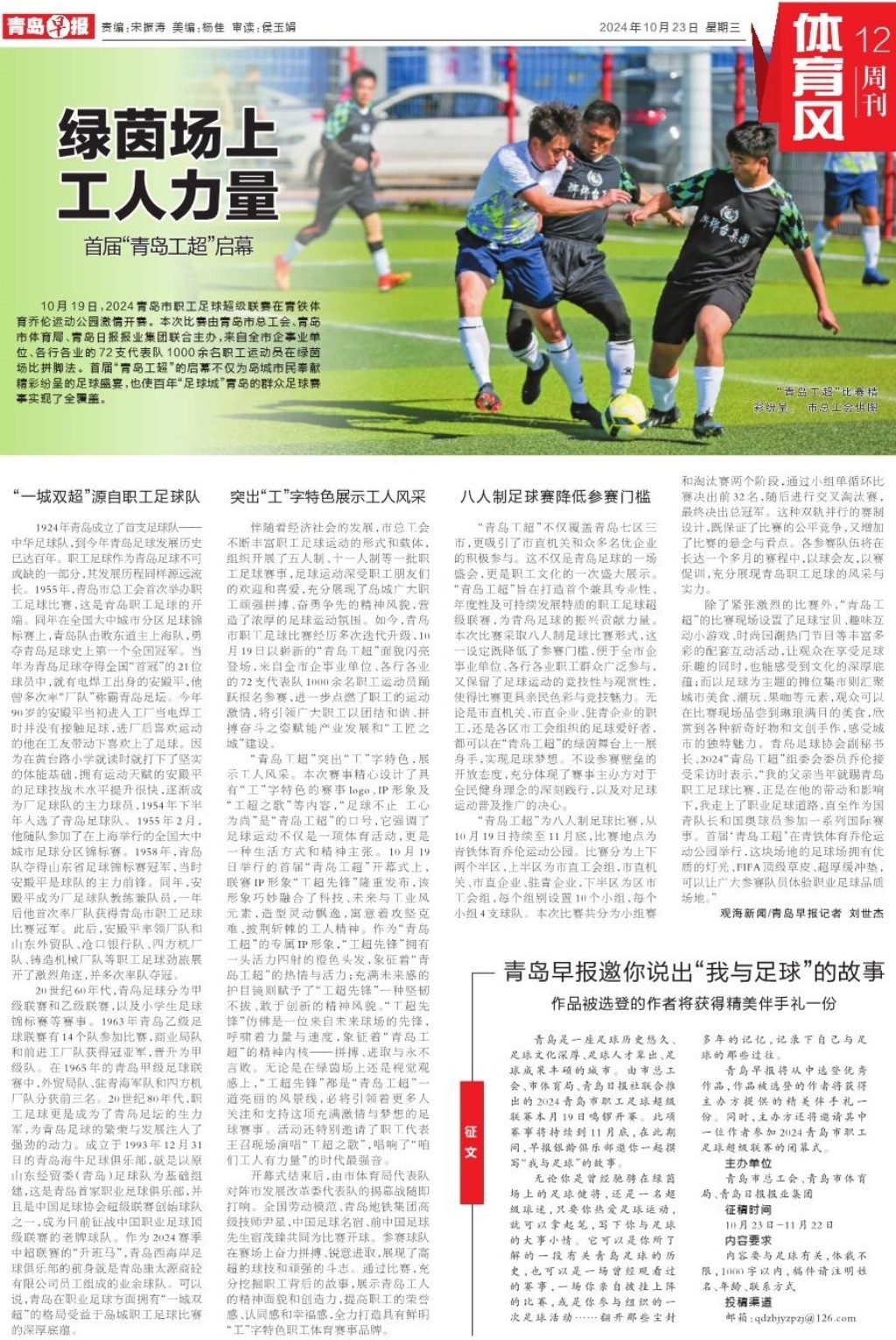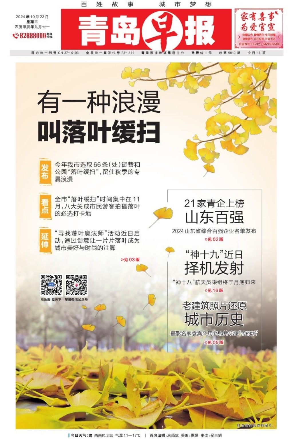 A01 头版 A02 划重点 A03 今日看点 A04 大爱青岛 A05 从车间走来——从工人到摄影名家 A06 青岛面孔 A07 身边事 A08 身边事 A09 都市圈 A10 深读 A11 观点 A12 体育风周刊 A13 竞技 A14 教育周刊 A15 绿地 A16 天下