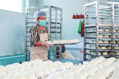 与坳里村茶食工坊专门制作花饽饽、抹茶馒头不同,甜河村的茶食联营工坊主要从事老面馒头、枣花饽饽等10余款农村传统面食的加工制作。“现在我们每天平均能蒸2000多斤、大约7500个馒头,主要是给企业、酒店、食堂等单位供货,到了春节、重阳等节日或村民办喜事,我们还承接枣饽饽、喜饽饽等花样馒头定制。”甜河村党委书记宋瑞飞介绍。