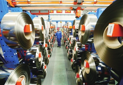 青岛云路先进材料技术股份有限公司的工人盘点出口海外市场的非晶带材产品。