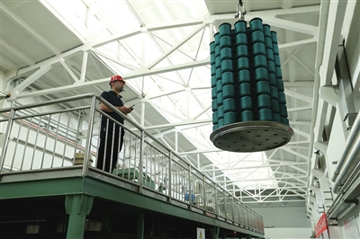 即发集团的技术工人在超临界二氧化碳无人染色产业化示范线上生产筒子纱产品。