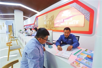 即墨区供电公司网格员在即墨古城“政电网格融合”示范点为客户办理用电业务。