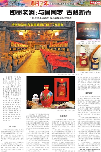 七十五载与国同梦,千年老酒再启新程。在传承中创新,在坚守中发展,即墨老酒演绎了老字号正青春的精彩乐章,以实际行动擦亮“黄酒北宗”的金字招牌。
