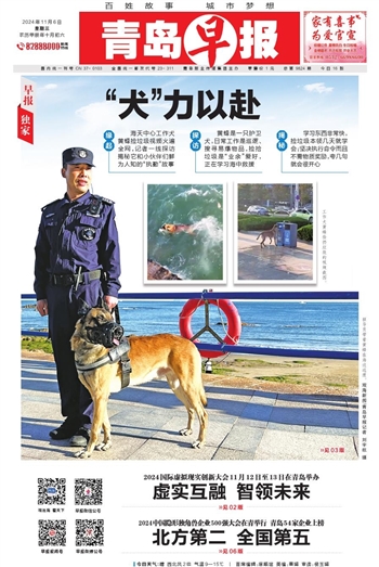 黄蜂是一只护卫犬,日常工作是巡逻、搜寻易爆物品,捡拾垃圾是“业余”爱好,正在学习海中救援