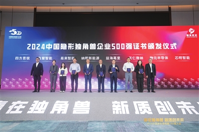 入围全国500强的青岛隐形独角兽企业领取证书。