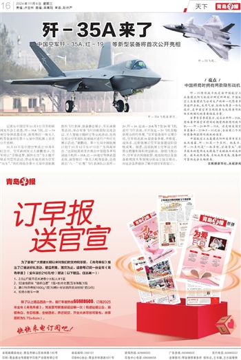 记者从中国空军11月5日召开的新闻发布会上获悉,歼-35A飞机、红-19地空导弹武器系统、新型察打一体无人机等装备将在第十五届中国航展上首次公开亮相。