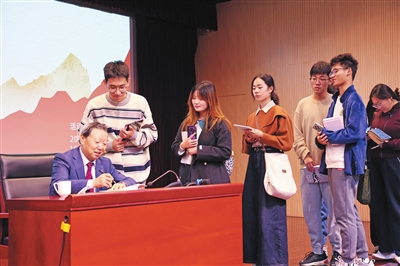 讲座现场,林少华与多位大学生进行了互动交流,并解答了学生们提出的“我们应该读什么书”“如何克服阅读中的无聊”以及“留多少时间给阅读”的问题。作为大学教授,林少华深知当下年轻人的生活状态,也针对现实给出了自己的阅读建议。“大学是读书的场所,无论大学有多少项活动,读书都是最正确、最重要以至最神圣的活动。说极端些,只要有一座好的图书馆,就是一座好的大学;只要能保证让学生安心读书,就是好的大学校园,就是985、双一流;只要能在大学好好读书,就是好的大学生。”