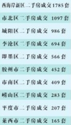 新建商品住宅方面,数据显示,10月份岛城新建商品住宅成交4251套,成交面积约54.72万平方米,成交总价约85.82亿元,各项数据较去年同期均上涨。具体来看,10月份新建商品住宅成交集中在西海岸新区、城阳区等地,西海岸新区新建商品住宅成交1128套,城阳区新建商品住宅成交876套,李沧区新建商品住宅成交408套,市北区新建商品住宅成交401套,胶州市新建商品住宅成交372套,即墨区新建商品住宅成交363套,平度市新建商品住宅成交361套,崂山区新建商品住宅成交173套,莱西市新建商品住宅成交150套,市南区新建商品住宅成交19套。从新建商品住宅成交环比变化来看,除市南、市北外,其余区市上月新建商品住宅成交量均环比下滑。
